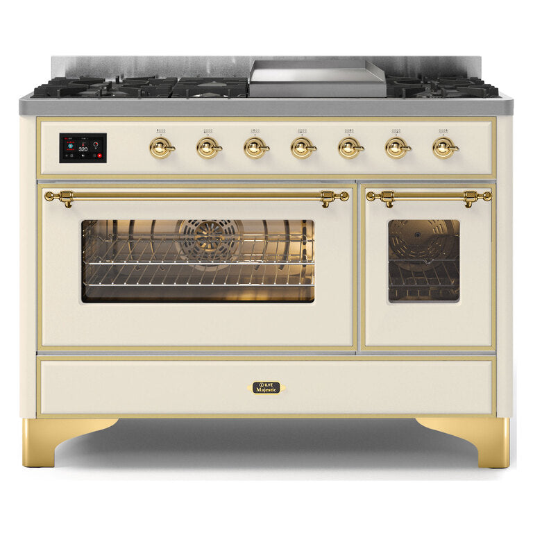 Vendor:ILVE Majestic II 36‑inch Dual Fuel Range with 6 Burners, Griddle, Warming Drawer (Triple Glass Door, Graphite Matte, Brass, Liquid Propane) – UM09FDNS3MGGLP