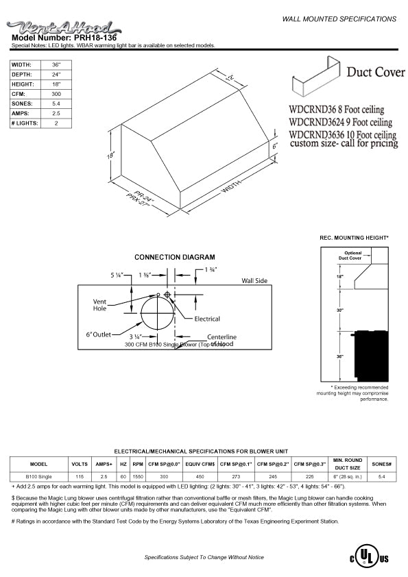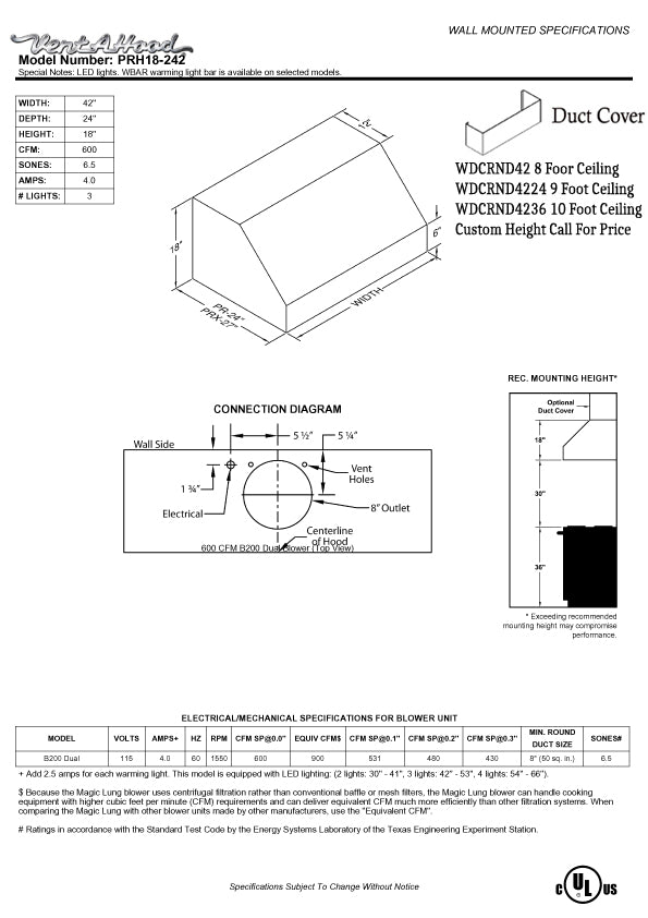 Vendor:Vent-A-Hood 240 - 625 CFM 4 Speed Single Blower from the M Collection - M600