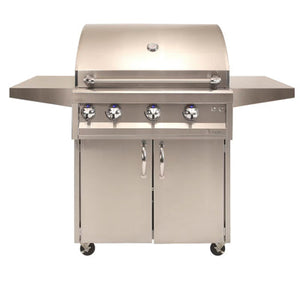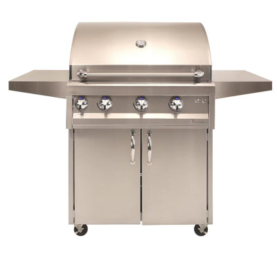 The Artisan Professional 32-Inch Freestanding Propane Gas Grill comes with three high-performance burners and a built-in rotisserie. Perfect for outdoor chefs seeking professional-quality grilling on a mobile unit.