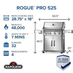 Napoleon Rogue PRO 525 4-Burner Propane Grill w/ Side Burner - RP525SIBPSS-2